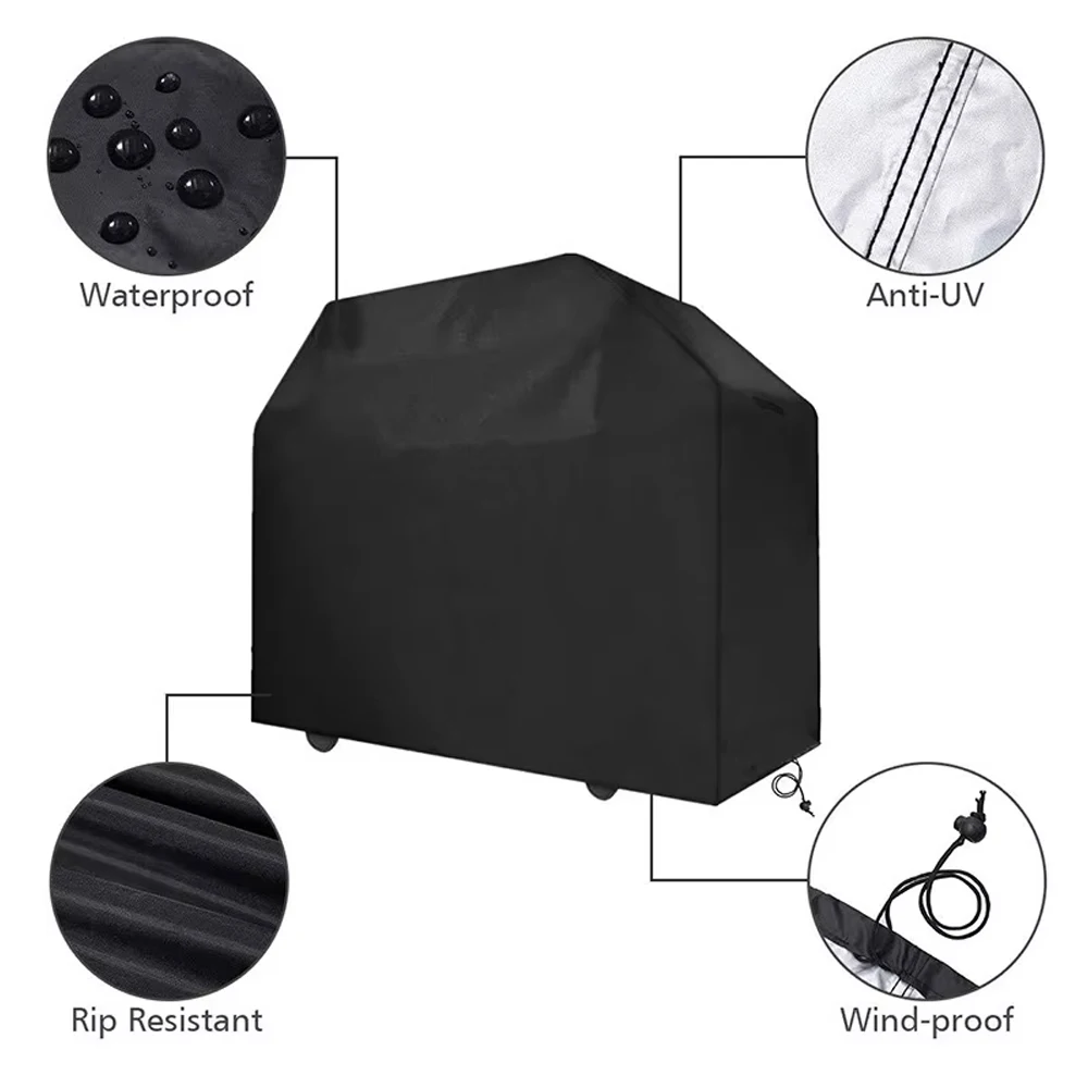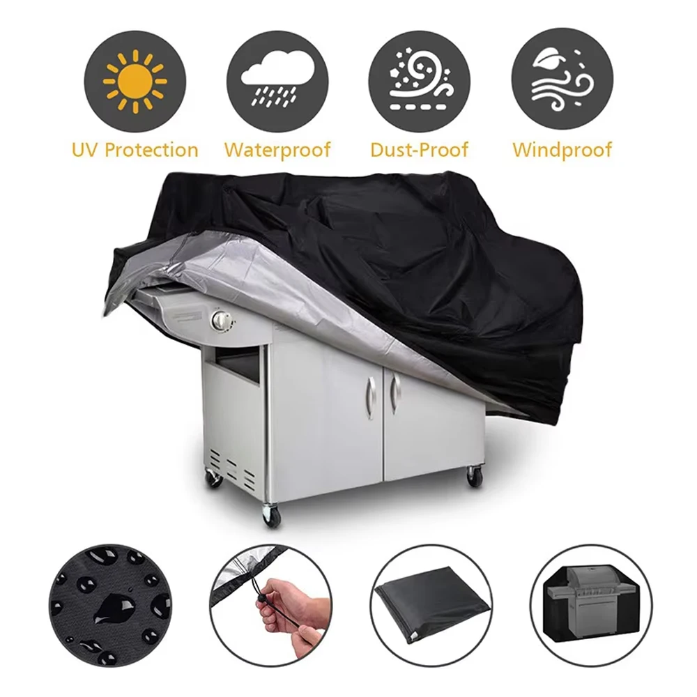 BBQ Grill Cover is a durable and reliable solution for protecting your barbecue grill from outdoor elements. Designed to fit multiple grill sizes, it offers 8 size options to ensure a secure and proper fit for different BBQ models. Made from heavy-duty waterproof material, it shields your grill from rain, dust, snow, and sunlight. The weather-resistant fabric helps prevent rust, fading, and damage caused by prolonged outdoor exposure. Ideal for Weber, Charbroil, and similar grills, it provides all-season protection. The anti-dust design keeps your grill clean and ready for use at all times. Reinforced stitching enhances durability and prevents tearing during windy conditions. Easy to install and remove, it offers convenient coverage when the grill is not in use. The cover folds compactly for simple storage when not needed. Suitable for patios, gardens, balconies, and outdoor kitchens, it blends functionality with practicality. Its secure fit helps reduce movement in windy weather. Built for long-term outdoor use, it maintains its protective performance over time. This BBQ grill cover extends the lifespan of your grill by keeping it safe and clean. Choose this heavy-duty barbecue cover for dependable outdoor protection and peace of mind.