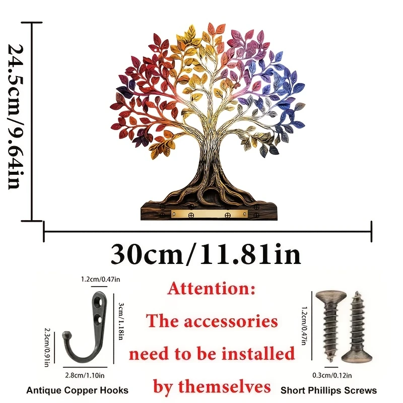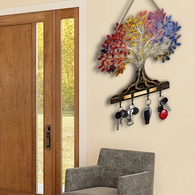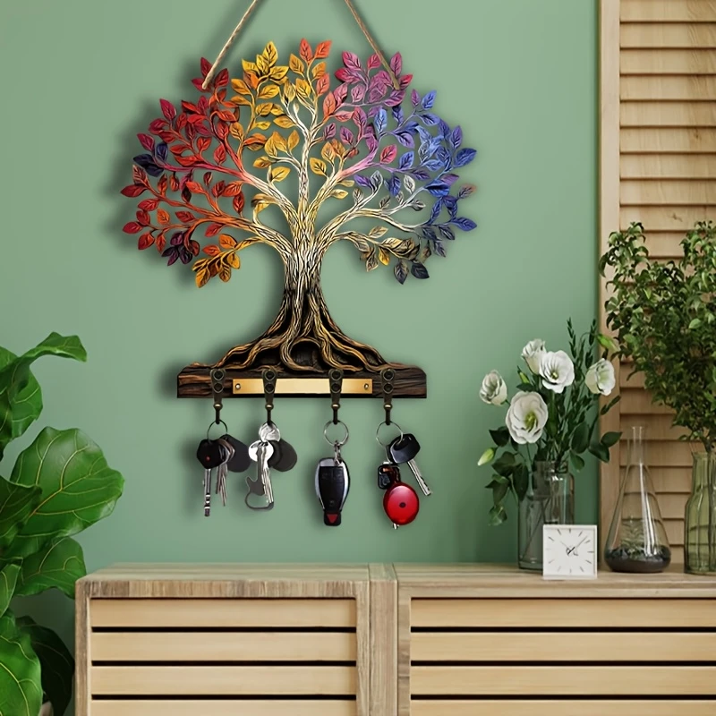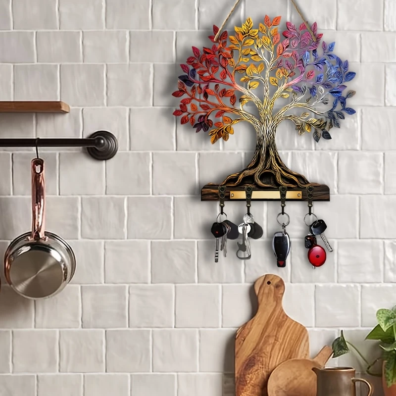 Tree of Life Key Holder is a stylish and practical addition to any home, combining functionality with decorative charm. Made from high-quality wood, it features a beautiful Tree of Life pattern that adds a natural, artistic touch to your walls. This 1-piece wall-mounted key hanger provides convenient storage for keys, keeping your entryway or room organized and clutter-free. Its durable wooden construction ensures long-lasting use, while the smooth finish preserves its aesthetic appeal. Perfect for entryways, bedrooms, or living rooms, it adds both functionality and style to your space. The wall-mounted design saves countertop space and keeps keys within easy reach. Easy to install, it fits most standard walls and includes hooks for hanging multiple keys. Ideal for households, apartments, or offices, it helps maintain an organized and tidy environment. The natural wood finish complements a variety of décor styles, from rustic and farmhouse to modern and minimalist. Lightweight yet sturdy, it securely holds keys, small accessories, or decorative items. Its compact size makes it perfect for tight spaces without sacrificing style. The Tree of Life motif symbolizes growth and harmony, adding a meaningful decorative touch. Choose this wooden key holder for its practicality, durability, and aesthetic appeal. It’s a must-have accessory for keeping your keys organized while enhancing your home décor.