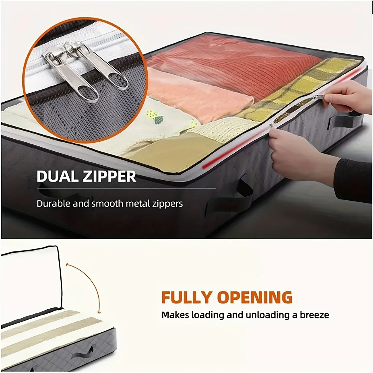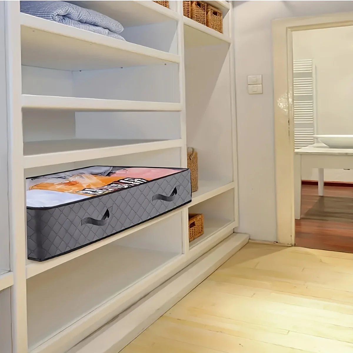 Under Bed Storage is a practical and versatile solution designed to help you maximize bedroom space while keeping items organized and dust-free. Perfect for storing quilts, blankets, seasonal clothing, or other household items, it provides ample storage without taking up extra floor space. Made from durable, high-quality materials, this storage container is built to last and protect your belongings. Its dustproof design ensures that items remain clean and well-preserved over time. Ideal for use under beds, in closets, or in tight spaces, it keeps your home tidy and clutter-free. The lightweight and flexible design allows easy sliding in and out from under the bed, making access convenient. Large capacity provides sufficient room for bulky items while remaining compact and unobtrusive. Its transparent or semi-transparent material allows you to quickly identify contents without opening the container. Easy to maintain and wipe clean, it stays looking neat and functional over time. Suitable for bedrooms, dorm rooms, apartments, or shared living spaces, it maximizes storage efficiency. Great for keeping your home organized, it simplifies seasonal storage and decluttering tasks. The practical design combines functionality with modern aesthetics, complementing any décor. Choose this under bed storage container for its combination of durability, convenience, and space-saving efficiency. It’s an essential storage solution for maintaining an organized, tidy, and efficient home.